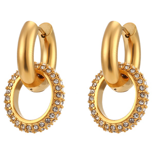 Lüks çift daire parlayan zirkon damla küpe altın kaplama kalın yuvarlak paslanmaz çelik küpe olmayan kararmaz kadınlar takı